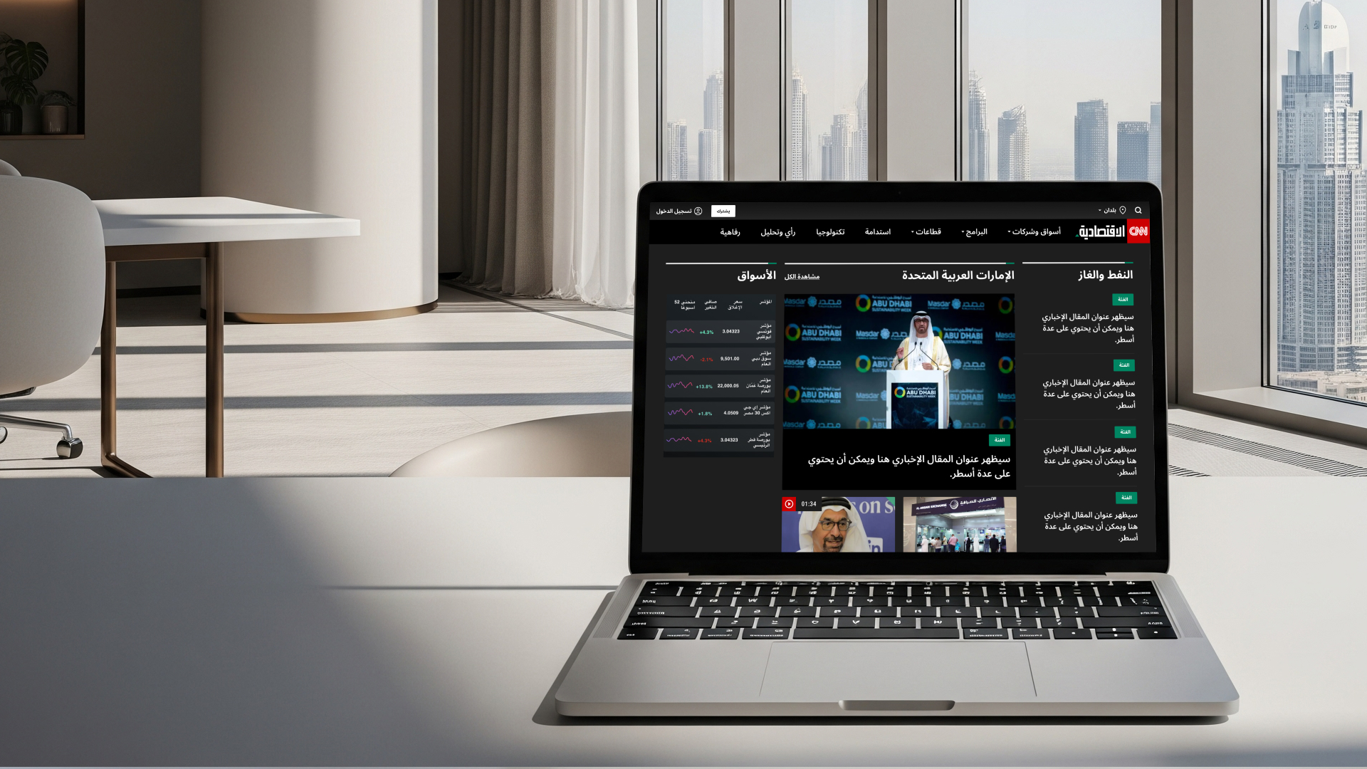 During onsite design workshops, the client’s vision became clear: the platform needed to embody the immediacy of a live TV broadcast, featuring real-time stock updates, a scrolling news ticker highlighting top and secondary stories, and a dynamic hero slideshow spotlighting breaking news and priority content. The team was already preparing for major regional events such as COP28 later that year.